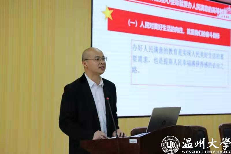 首先由王宗正院长为全院教职工和学生党员上了一堂《坚持立德树人办好人民满意的教育》党课,王院长根据习近平总书记关于教育初心和使命的重要论述,带领全院教职工学习了“履行高等教育的基本职能以立德树人为根本任务”和“践行高等教育的初心使命就要办人民满意的高等教育”。对照高等教育人才培养的新要求,王院长分析指出了我院目前在教书育人方面存在着一些差距,如在实践课程、教学内容和过程,以及学生满意度等方面还需要继续努力。要求老师们应当努力争当“四有”好老师。