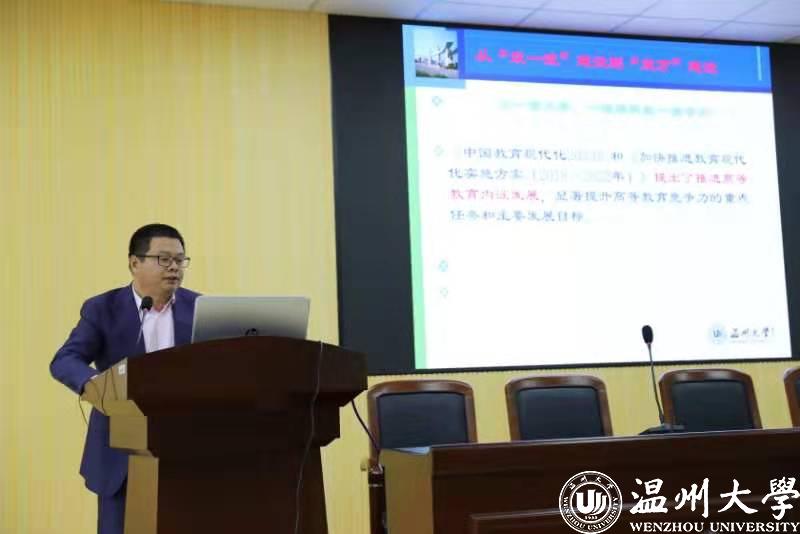 其次周湖勇副院长作《关于推进学院一流本科教育的思考》的报告。周院长根据学校建设一流本科的一系列举措,指出了我院的基本思路:围绕一流本科建设,开展教学工作的改革,全面提升人才培养质量,落实“以本为本”。还提出了以人才培养为中心、以科研为支撑,为社会服务为途径,全面推进教学改革,提升本科生教学质量。同时,针对学院的现状提出了一系列措施:强化立德树人,加强专业思政和课程思政建设;推进课堂教学革命;扩张规模,强化专业内涵建设;推进教学信息化;通过社会服务,深化实践教学改革,全面提升学生实践能力的培养;严格教学管理;加强师资建设;强化质量监控。
