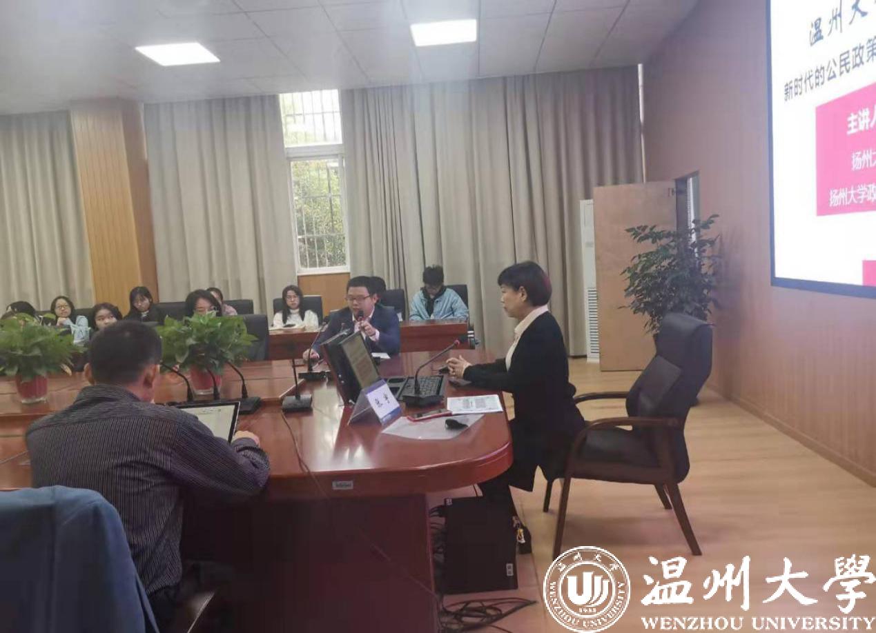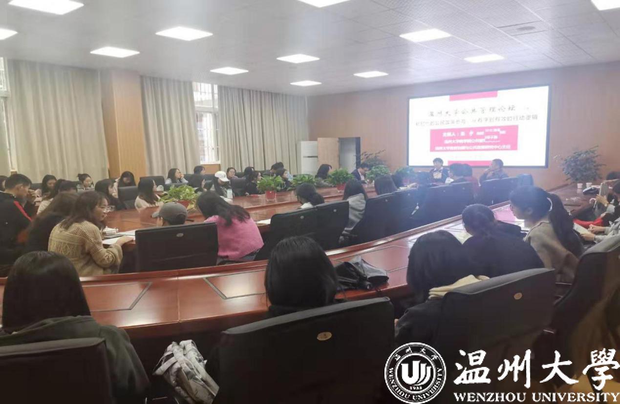 2019年11月22日9时,扬州大学商学院公共管理系主任、政府治理与公共政策研究中心主任、博士生导师张宇教授应邀做客“温州大学公共管理论坛”,为我院师生带来“新时代的公民政策参与:从有序到有效的行动逻辑”的主题讲座,本次讲座由周湖勇副院长主持,王勇老师点评,部分行政管理专业的老师和学生积极参与。