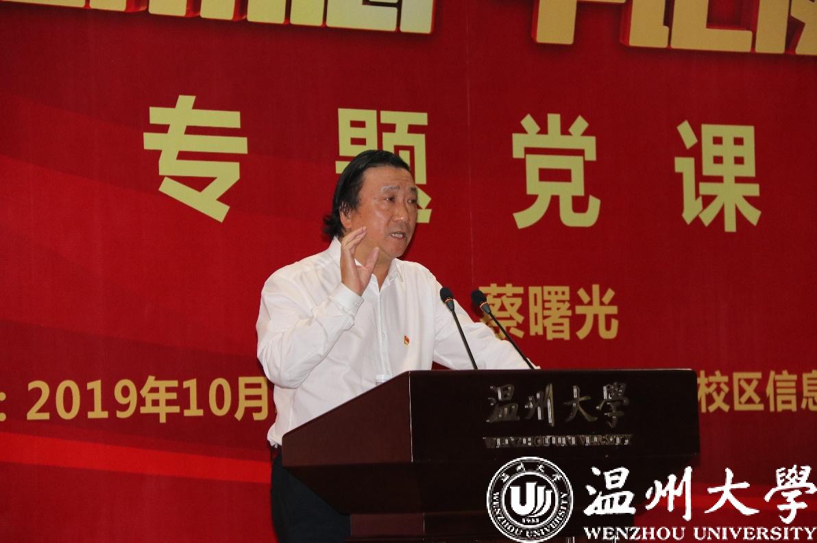 10月30日下午,温州大学副校长蔡曙光在北校区信息楼报告厅作题为《牢记初心使命、自觉锤炼党性修养》的专题党课,全院党员参加了学习。蔡校长从党性修养必须做到“五个过硬”、党性修养存在不足的具体表现和新时代党员干部如何锤炼党性修养三方面分享了自身的认识和体会。他指出,践行初心、履职尽责,党性修养是制胜的法宝。新时代的党员干部要在常学常新中培养党性修养,信念过硬是基石、政治过硬是根本、责任过硬是保证、能力过硬是关键、作风过硬是本质体现。最后,蔡曙光以“讲政治以养大气,多读书以养才气,淡名利以养朝气,敢负责以养浩气,不媚俗以养骨气”与在座党员共勉,号召大家做政治合格、信念坚定,严守规矩、纪律严明,道德高尚、品行端正,奉献担当、敢为善为的合格党员。