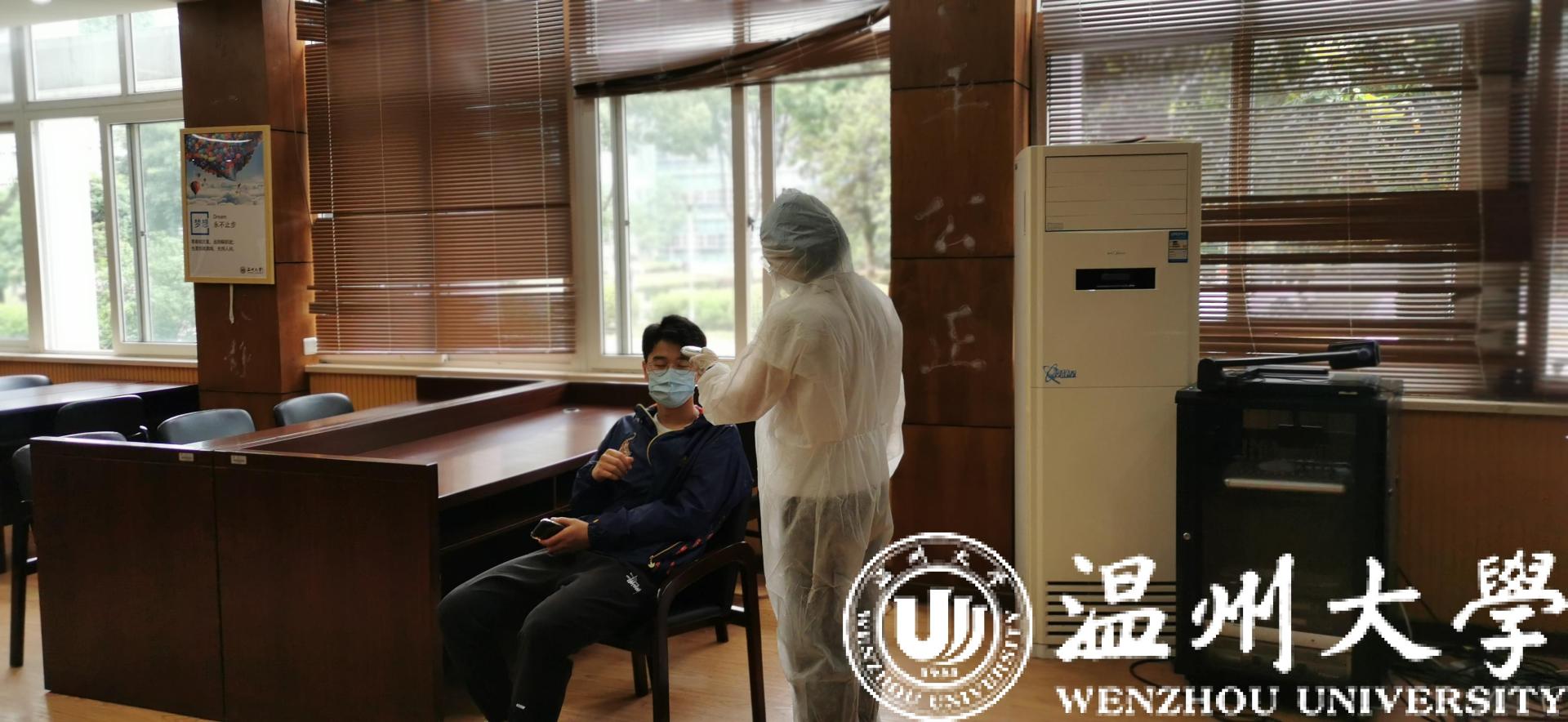 辅导员将疑似症状学生带至临时隔离点,询问情况并测体温后,通知医生到场