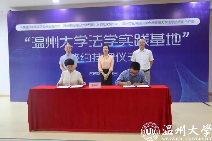 9月18日上午,瓯海区矛盾纠纷调处化解中心与151amjs澳金沙门合作签约暨“温州大学法学专业实践教学基地”揭牌仪式举行。瓯海区区委副书记钱素文参加仪式并致辞,151amjs澳金沙门院长王宗正、副院长周湖勇等参加仪式。