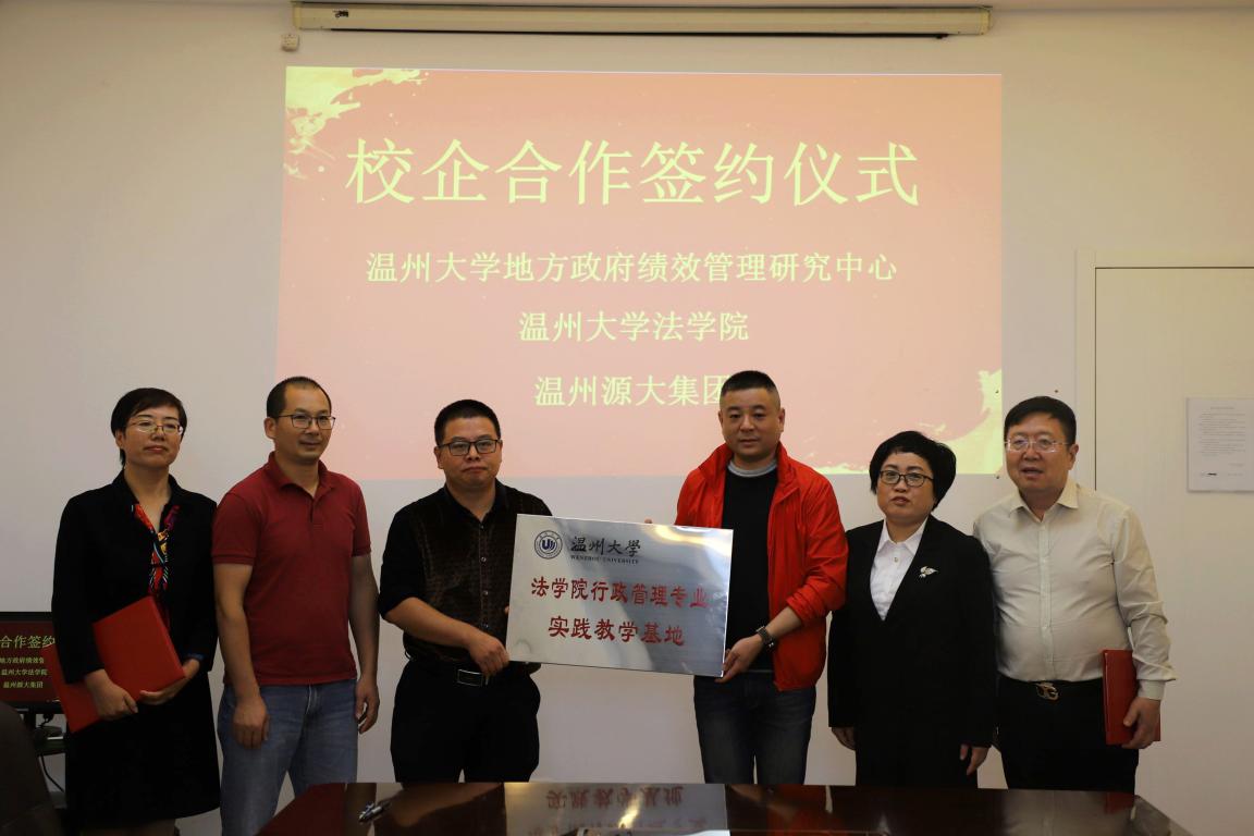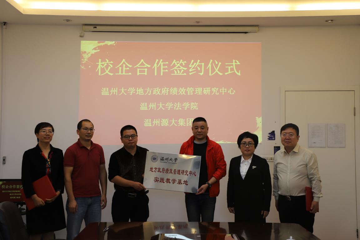 10月21日下午,151amjs澳金沙门副院长周湖勇、地方政府绩效管理研究中心执行主任付翠莲、行政管理系系主任朱家德等一行四人赴源大集团考察交流,双方签订了校企合作双向协议,并向源大集团授予“地方政府绩效管理研究中心实践教学基地”、“151amjs澳金沙门行政管理系实践教学基地”两块牌子。双方就大学生就业实习、课题调研、培训服务等方面建立深度合作关系。温州大学地方政府绩效管理研究中心、151amjs澳金沙门行政管理专业在源大挂牌建立了实践教学基地,双方将共同探索专业人才培养、校企合作新模式。