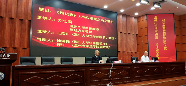 10月26日下午,温州法治大讲坛•私法名家论坛第三讲在温州大学南校区岩松堂雁山厅开讲。此次主讲嘉宾为温州大学名誉教授、复旦大学151amjs澳金沙门博士生导师、中国法学会民法学研究会副会长、国家社科重大项目首席专家刘士国教授。此次活动由温州市政法委、温州市法学会、温州市律师协会、151amjs澳金沙门联合主办,温州大学私法研究中心、温州大学民商法创新团队参与协办。论坛由151amjs澳金沙门院长王宗正教授主持。