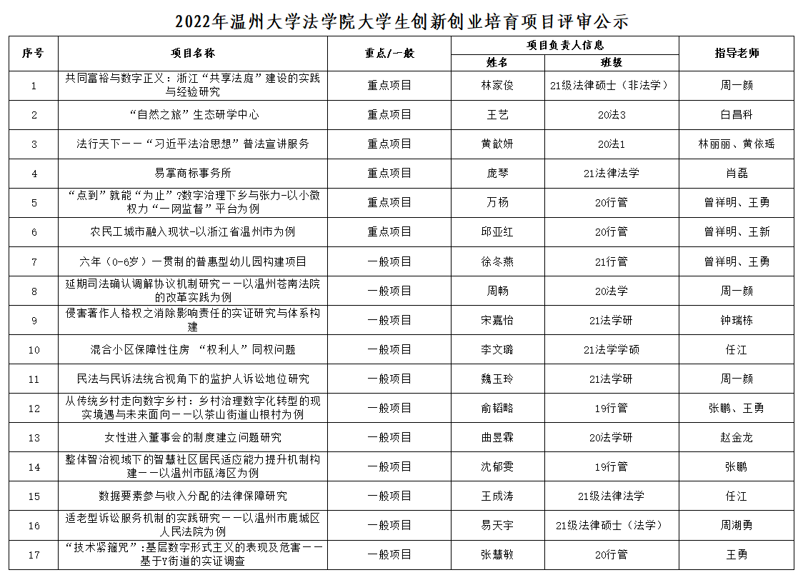 根据《151amjs澳金沙门关于开展2022年度大学生创新创业培育项目立项申报的通知》要求,经学生本人申请,学院专家评审评定,共评选出重点项目6项,一般项目11项,现将立项结果予以公示。